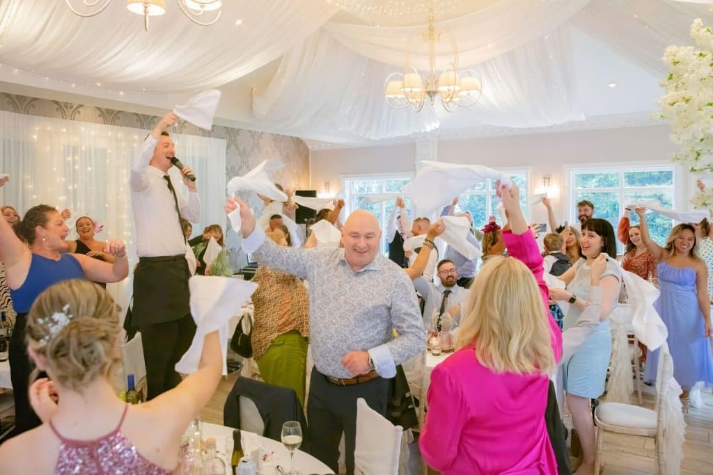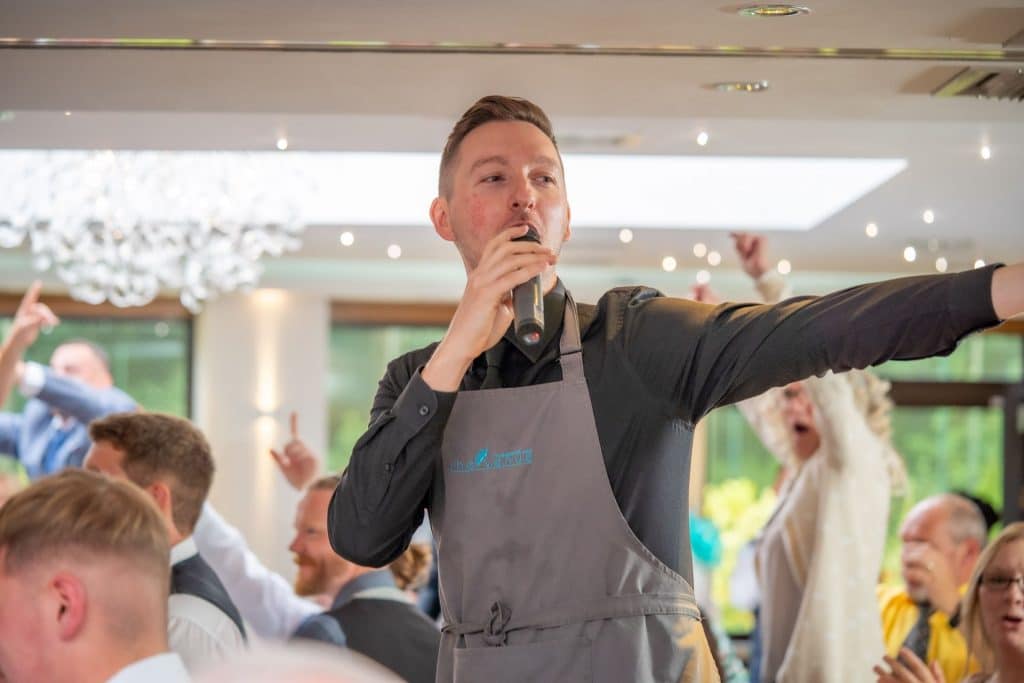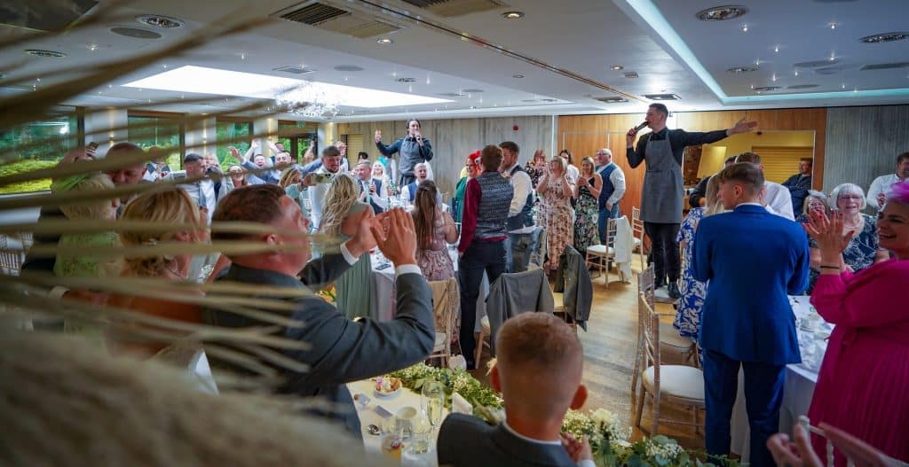 For Weddings, your wedding Breakfast is one of the 4 key parts of the perfect wedding day. The others, of course, being the ceremony, drinks reception, and the evening reception. Make sure your wedding breakfast is not only filled with great food but also with lots of fun which all your guests will talk about for years to come! The wedding breakfast is a vital time to re-energise your guests, hit them hard with some emotional speeches and MOST IMPORTANTLY get them up and ready for an evening of memorable entertainment and excitement!